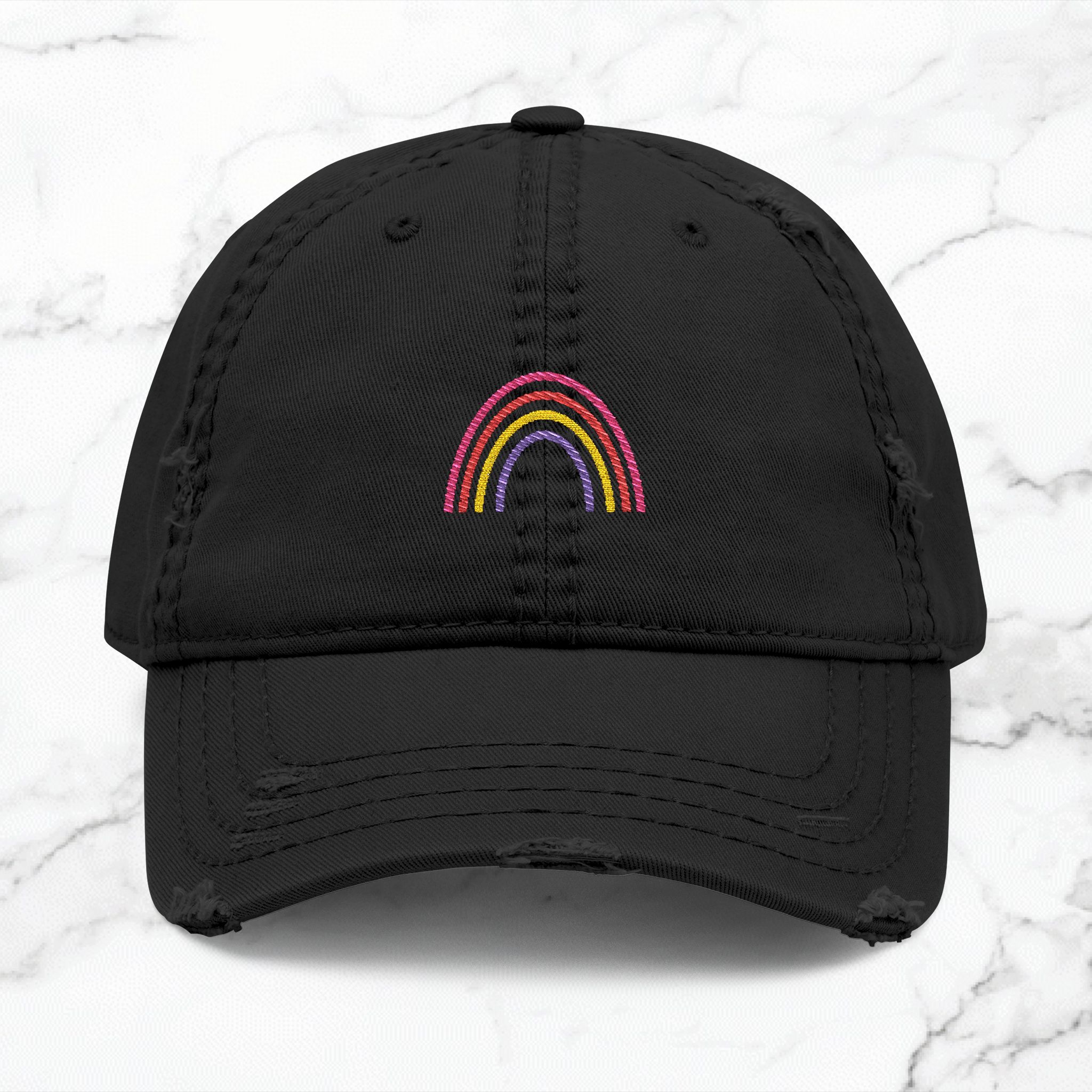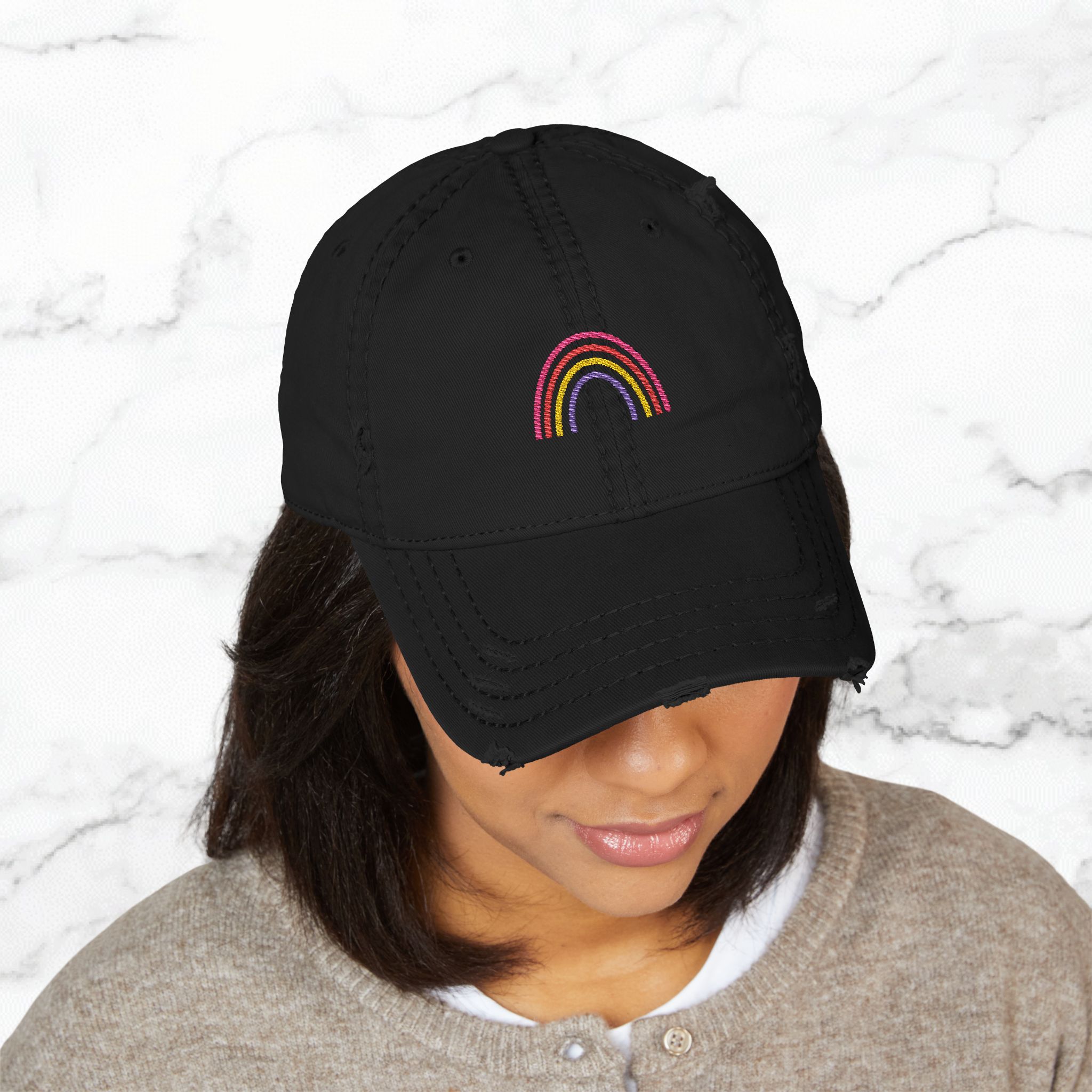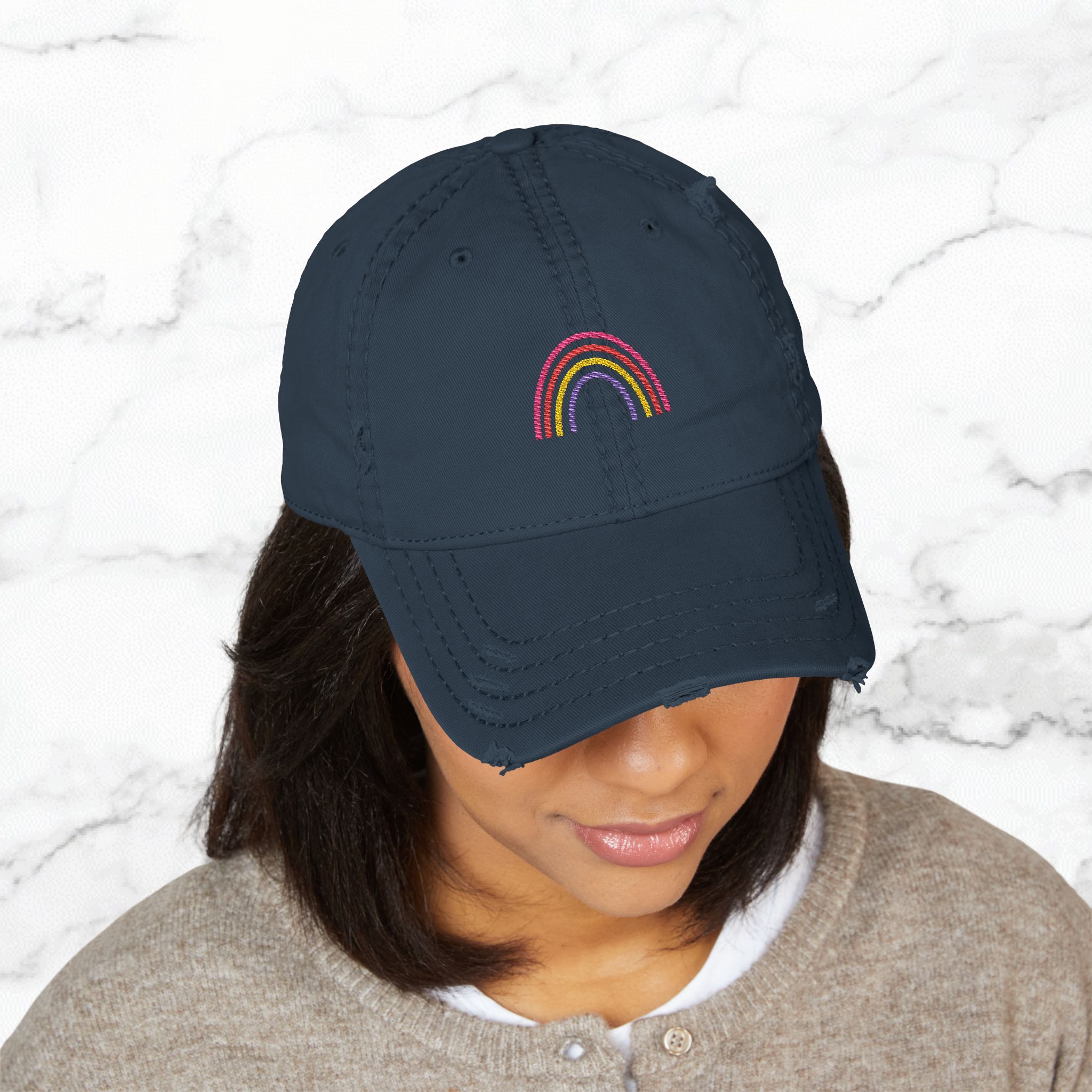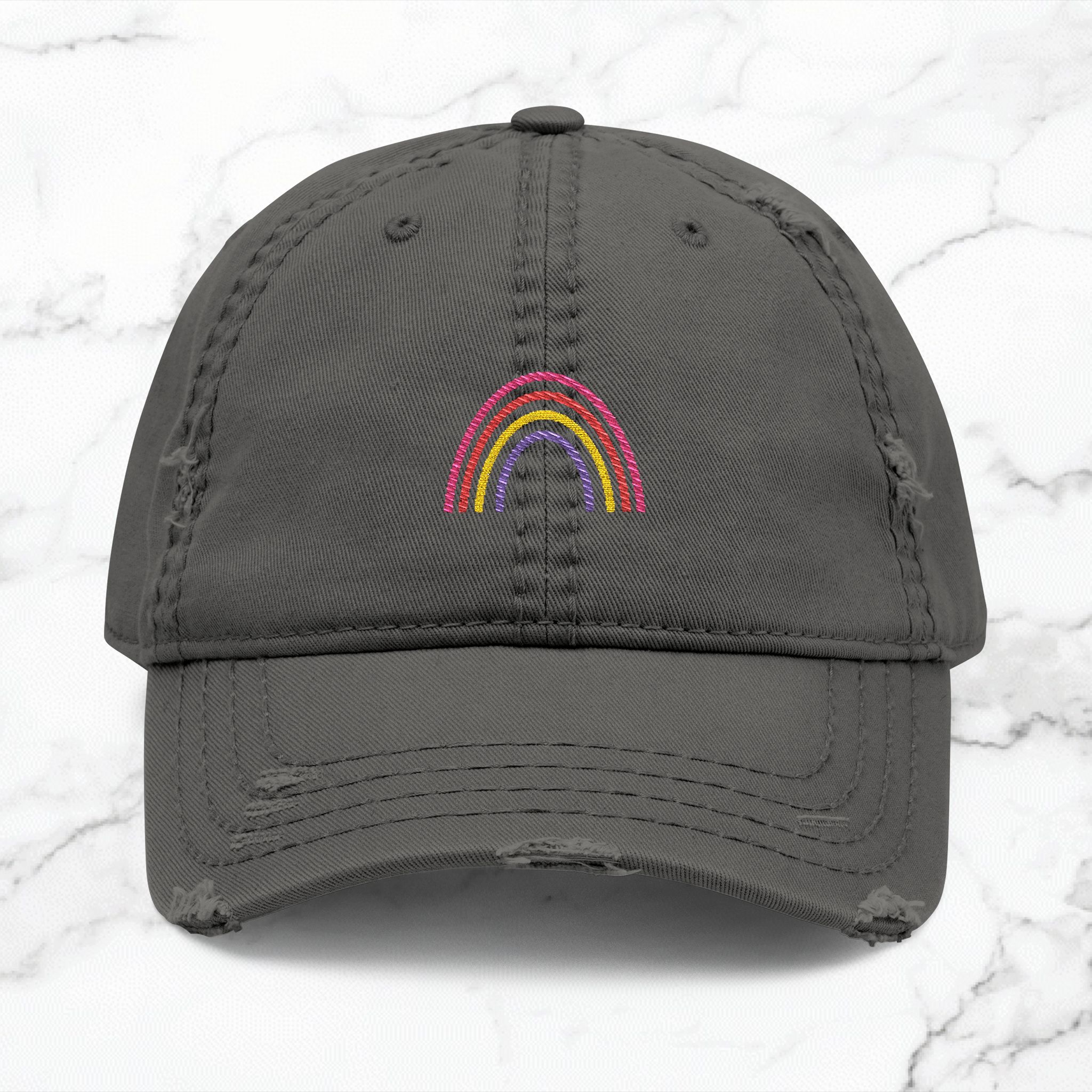 Rainbow Embroidered Distressed Hat, Trendy Baseball Cap for Men & Women, Gift for Mother’s Day, Summer Accessory, Casual Style